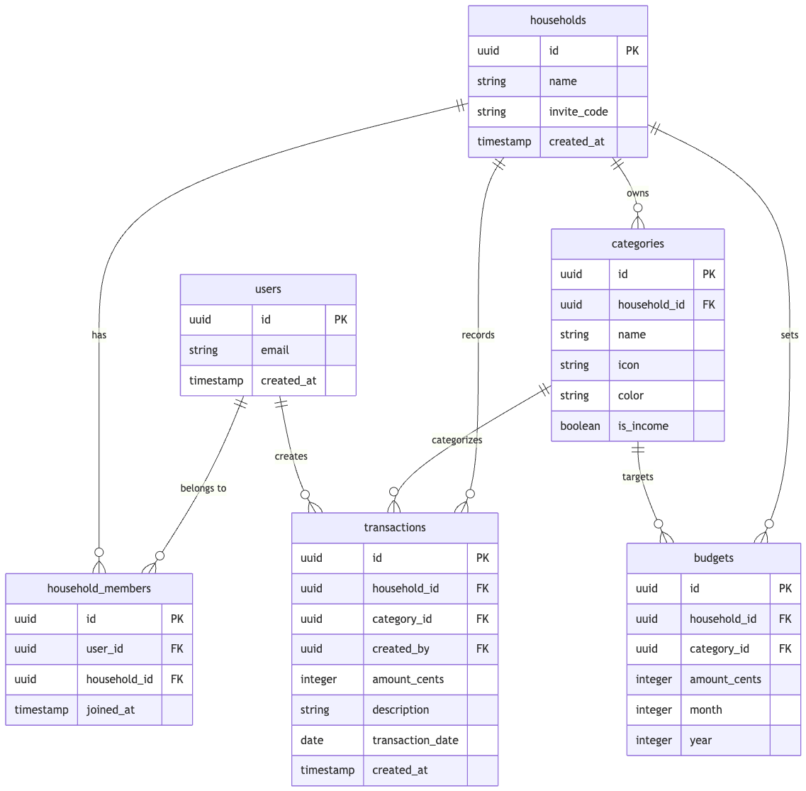 Defining the core user flows and data model that support household budgeting.